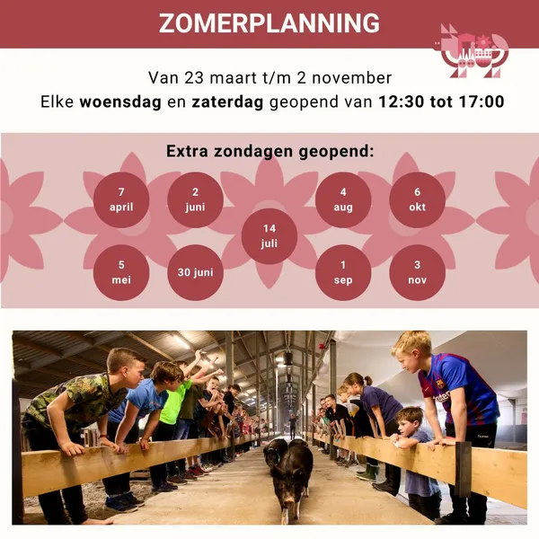 Van 23 maart tot en met 3 november zijn we elke woensdag en zaterdag van 12:30 tot 17:00 geopend!